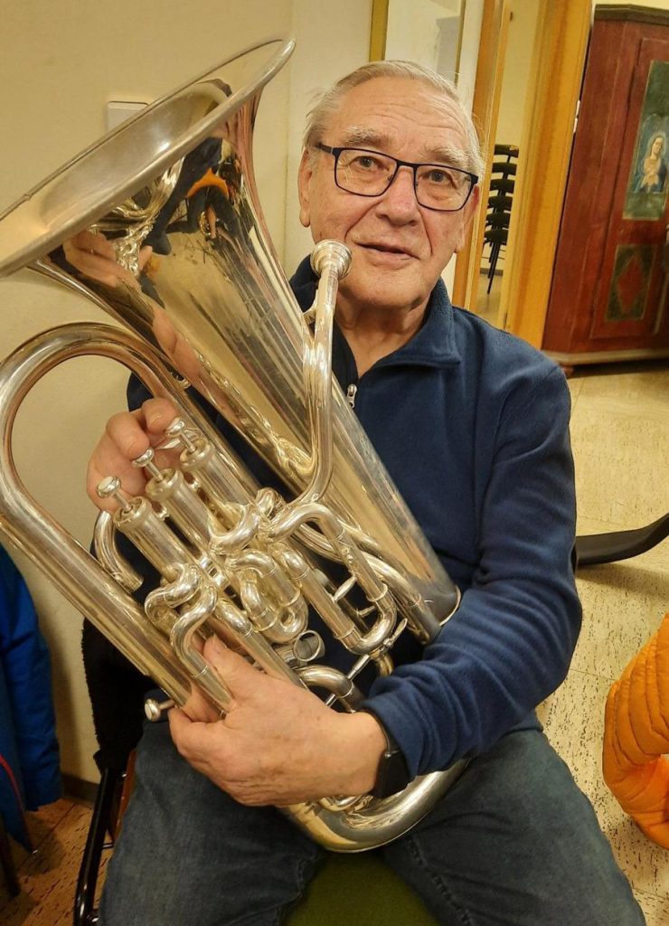 Rüdiger Witz ist mit seinen knapp 85 Jahren das älteste aktive Mitglied im Musikverein Bobenheim am Berg. Bereits als junger Erwachsener begann er mit dem Musizieren auf dem Tenorhorn und spielt bis heute in zwei Orchestern: ConcertBoB und bobenheimer.